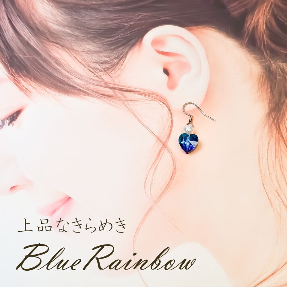 ブルーとレインボーカラーが美しいハート型ビーズです。