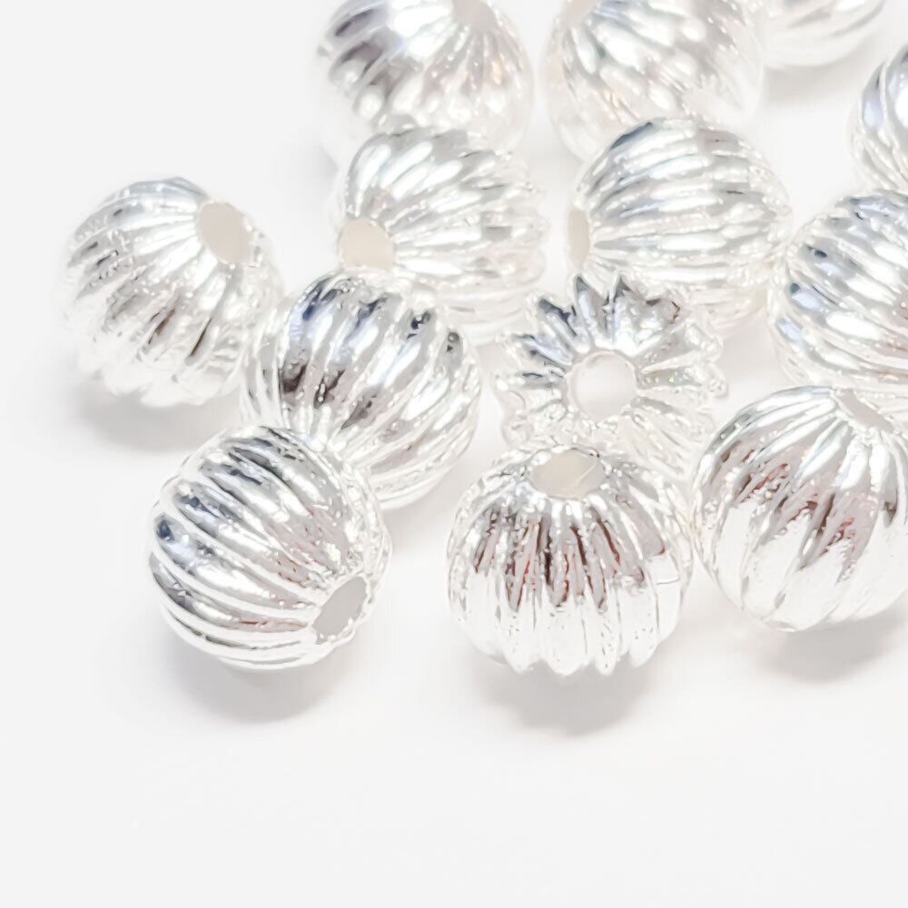 線のデザインが美しいラウンド型のCCBビーズ 8個セットです✨