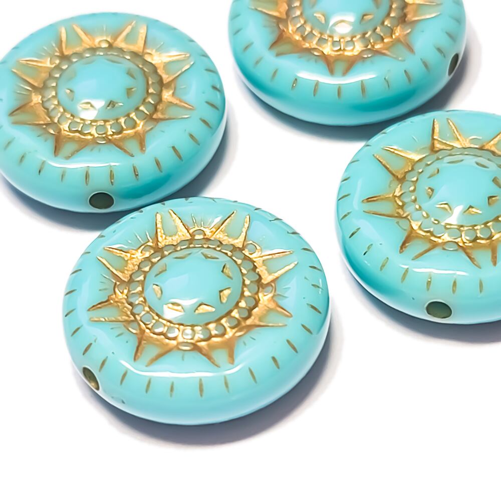 エスニック感たっぷりのフラットラウンド型アクリルビーズ 4個セットです✨
